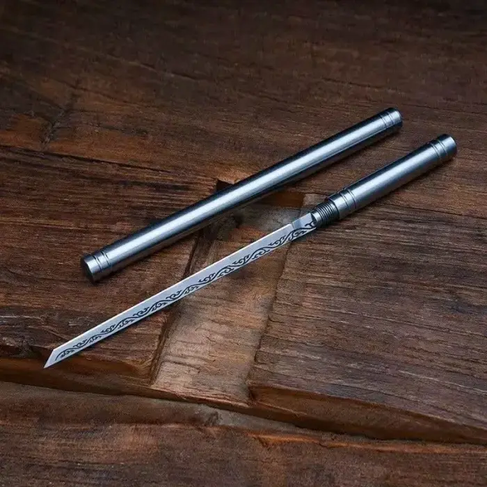 স্টাইলিশ এই স্টেইনলেস স্টিলের পেনটির ভিতরে লুকানো আছে একটি তীক্ষ্ণ ব্লেড, যা একে রুচিশীলতা এবং জরুরি সুরক্ষা – দুটোই একসাথে দেয়। আত্মরক্ষার জন্য উপযুক্ত এই পেনটি সহজে বহনযোগ্য এবং দেখতে একদম সাধারণ কলমের মতো।